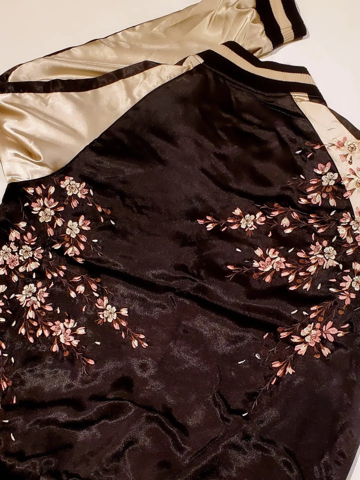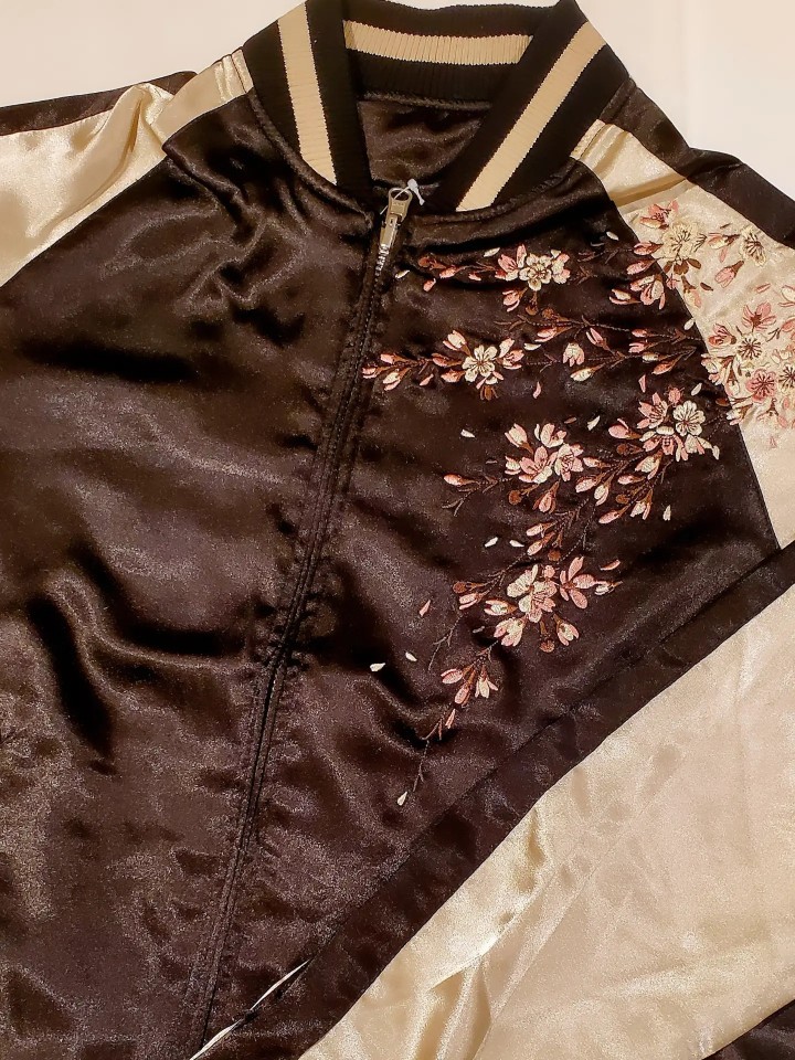 しだれ桜柄刺繍リバーシブルスカジャンの